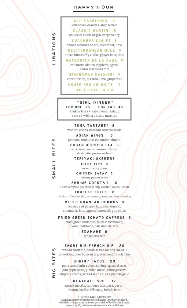 HAPPY HOUR at the BAR and on the PATIO ONLY