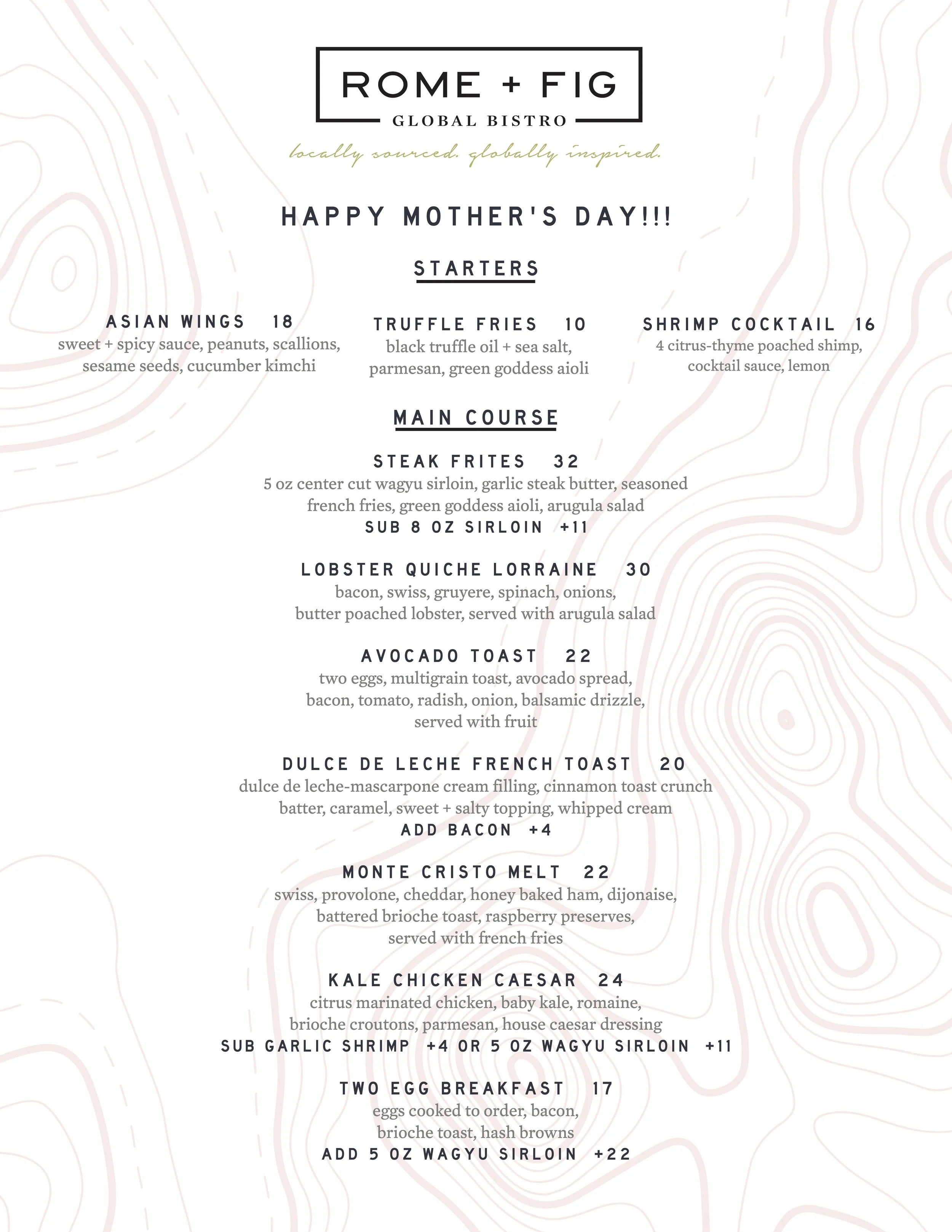 SPECIAL MOTHER’S DAY BRUNCH MENU